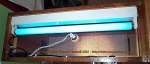 This is a geckos eye view of the same from the inside. Note that the UV glass filter has been removed from the lamp as useful amounts of UV light are then emitted from these lamps. (The glass filter can usually be removed by running a fine blade around the seal where the filter is attached.) | ||||||||||||||||